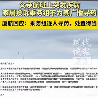 【厦航尽到了责任却被投诉,希望中国民航局不要和稀泥】一医生航班上突发疾病,要求广播寻药遭拒!航司:乘务组处置得当,网友吵翻。