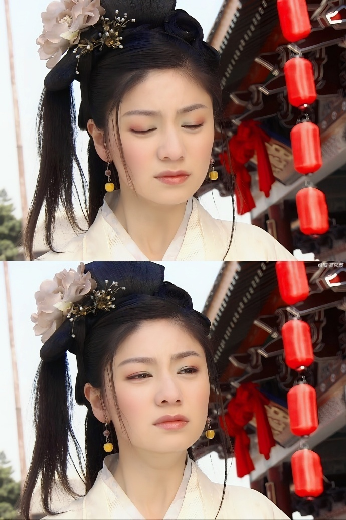 她在其中的扮相也相当惊人——在没有任何美颜、滤镜的情况下,她的鹅蛋脸、含情目均给观众留下了深刻的印象。