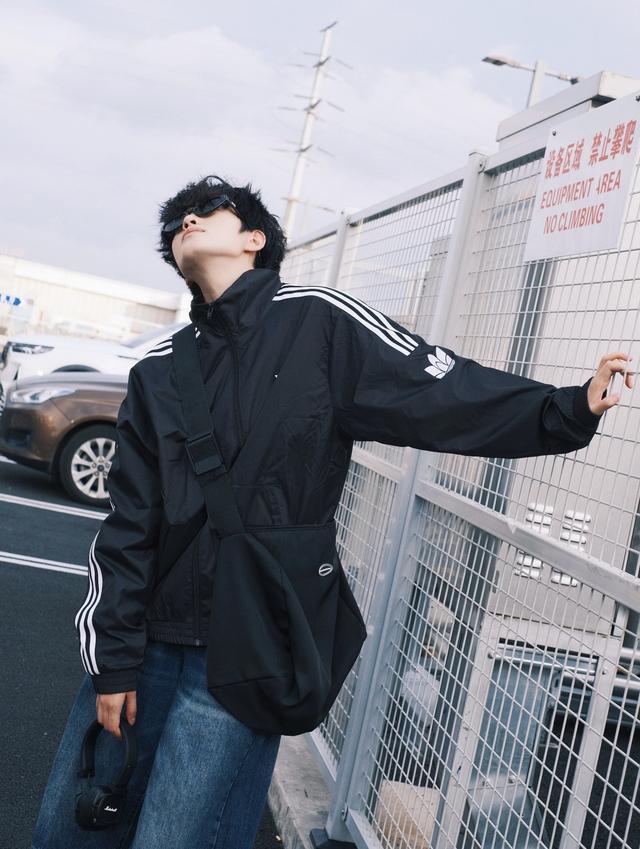 经典的黑色三条杠冲锋衣,带着少年感的桀骜与不逊,配上宽松牛仔裤和斜挎帆布包股票配资链接,痞帅感一下子来了!