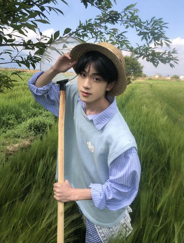 黑白竖条纹衬衫带着男生独有的清爽感,搭配一件带有春天气息的浅粉色针织披肩,披肩与衬衫的搭配清新又松弛,撕漫男即视感。