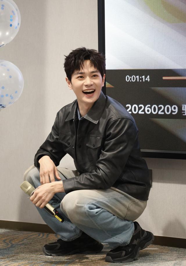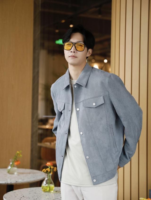 曹骏曾是很多人的童年男神,一身海澜之家经典黑色皮衣自带男士魅力,搭配做旧款直筒牛仔裤,两件基础且百搭的单品成就型男穿搭,看着休闲又帅气。