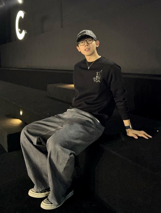 海澜之家一直是大家信任的男装品牌,一件黑色圆领卫衣搭配了极具松弛的阔腿牛仔裤,随性、不羁的氛围感拉满,选择鸭舌帽和帆布鞋作为穿搭点缀。